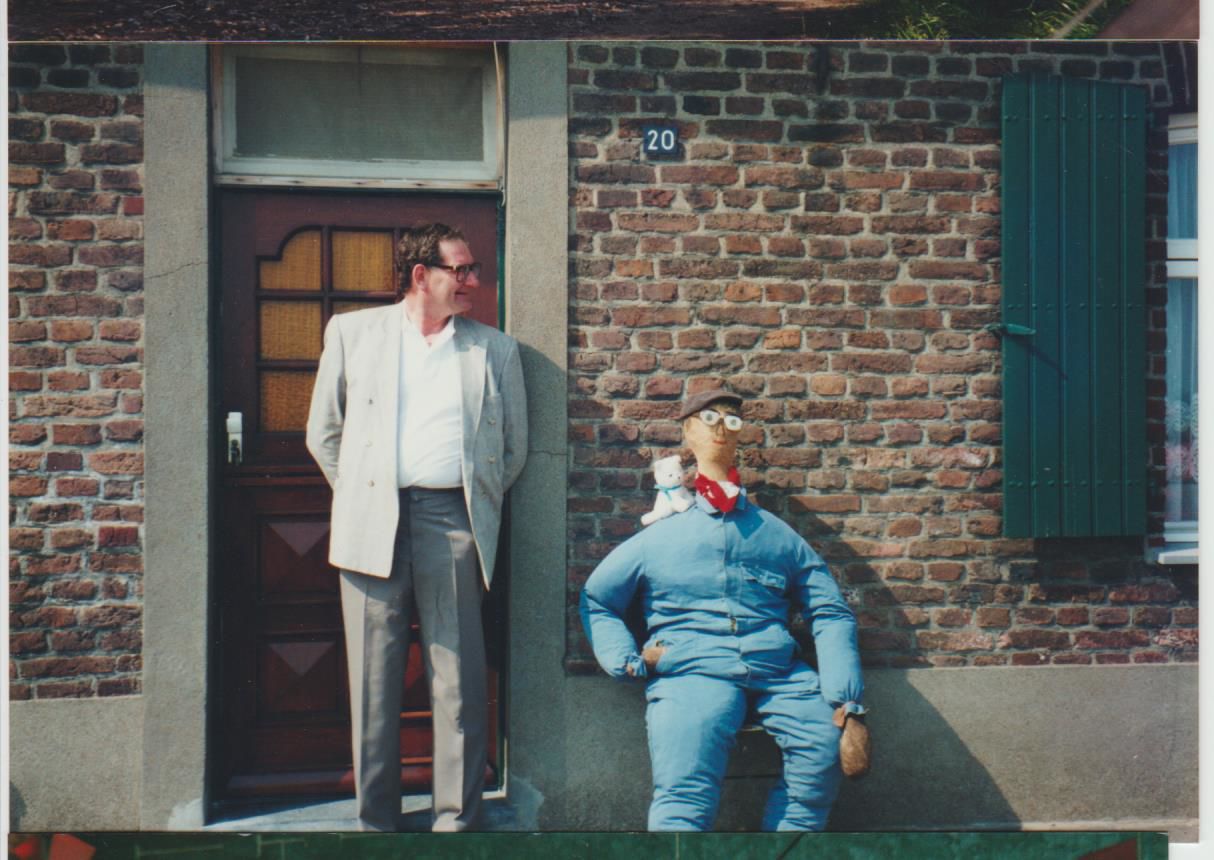 Naast ons woonden Jeu en Zus. Een gezellig stel,goed lachs en vol grappen.Ooit was hij Jeu bakker geweest,en dat hebben we geweten ook, na vele slagroomtaarten en wafels.Wanneer we te lang uit bleven na een zondag wandeling in het bos stond hij op de uitkijk en zei,, woar blief ger toch" met een bijna ongeruste blik in zijn ogen. Ook wanneer we met vakantie gingen wat zelden voorkwam en dan ook nog zeer kort,was voor hem een ongezellige tijd .Omdat het dagelijkse korte praatje dan miste waaraan hij zo gewend was Altijd was Jeu in de tuin bezig,ik ook wanneer ik vrij had. (Waat bisse aan't doon) zij hij dan. In het begin vond ik dat ook groente en aardappelen moest verbouwen en pootte een rijtje aardappelen Toen ik ze oogstte waren ze ongelooflijk dik en groot .Dé, zei hij dan de schjtomste boer met de diekste petatten. In het begin hadden Jeu en Zus nog asperges aan huis maar op het laatst was het wat te zwaar voor hun om met de kistjes te slepen en met de kruiwagen tussen de rijen naar het huis te balanceren .Jeu zaaide God weet wat aan kolen.Rode, sevooie, spits bloem en boerenkool natuurlijk.Dat ging wel op.De rode ,spits sevooie en andere harde kolen en kool raab bleven staan .En op het einde van het seizoen ging de hakbijl erop en zo kamen de stukken in de mestkuil en in het voorjaar weer op het land als mest.Uiteindelijk had hij nog meer werk met het opruimen dan met het zaaien water geven en schoffelen.Maar altijd goed gemutst.Wanner zondags de duiven kwamen moesten we stil zijn en niet langs zijn tuin lopen.Want dan ,,vallen de doeve neet" die durfden dan niet te landen in beter nederlands Hij was zo trots op zijn duiven en liet me af en toe zien hoeveel pennen ze wel niet hadden Wist ik veel hoe belangrijk dat dat wel niet was
